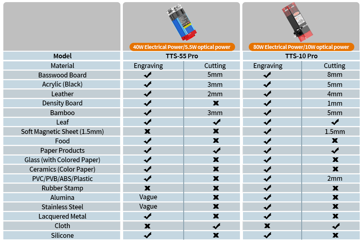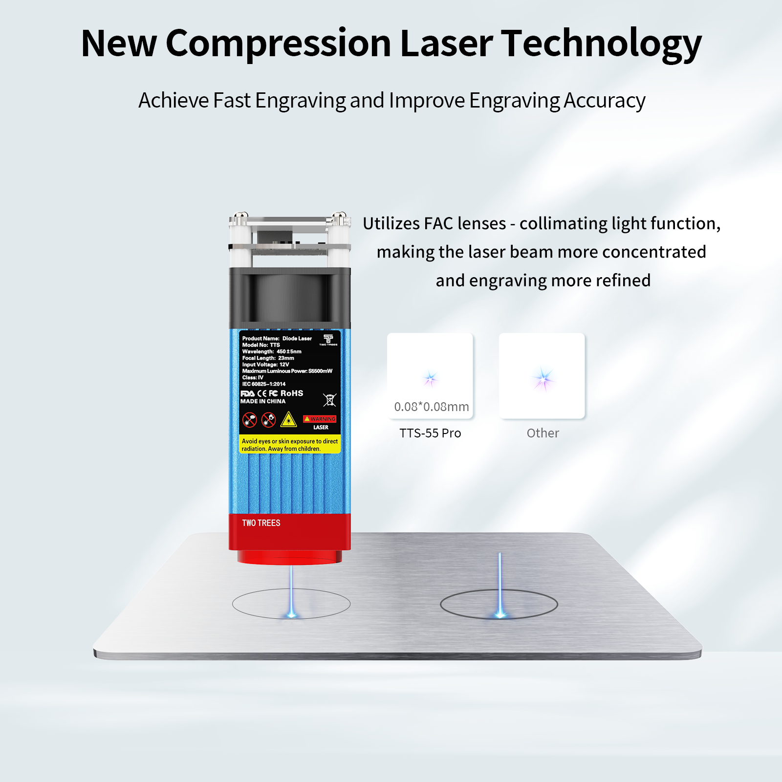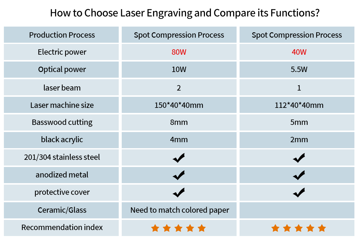 The laser source utilizes LD+C-Lens technology to generate abeam spot as small as 0.08mm, resulting in more detailed engravings.
