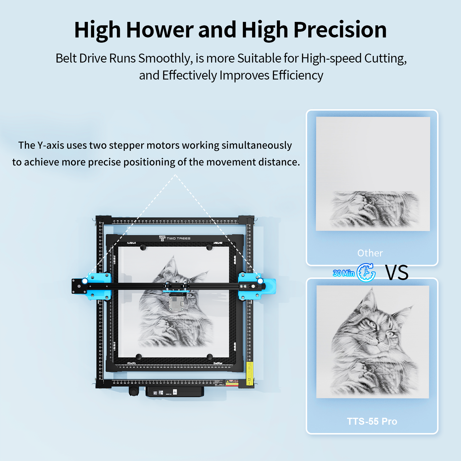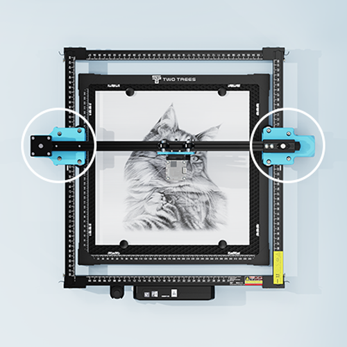 30000mm/Min fast engraving,The Y-axis uses two stepper motors working simultaneously to more accurately locate themoving distance,Effectivelyimprove efficiency.